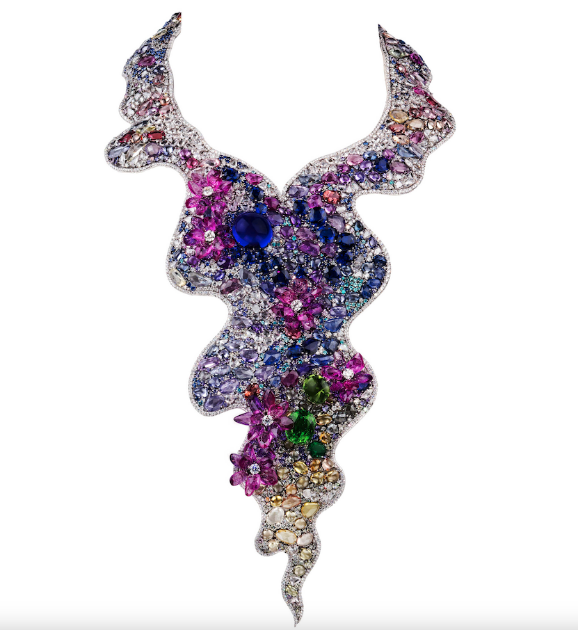 Born in Taiwan and now living between New York and Monaco, Hu began her career in jewellery after an injury at the age of 18 scuppered her ambitions to become a cellist. She attributes her success to her resolutely scholarly approach to design. “My role as a creative is to unite the past, present and future, so I’m not interested in typical cultural stereotypes,” says the jeweller, who counts Middle Eastern royalty, Oprah Winfrey and Chinese entrepreneurs amongst her clientele. “I love studying and draw inspiration from a wide range of sources, as well as Chinese philosophy.” Indeed, Hu’s latest collection of just 20 pieces includes a gem-set torque shaped like an elegant lotus stem as an ode to the work of Chinese artist Zhang Daqian (a contemporary of Picasso), and also a bib necklace encrusted with tanzanite, tourmaline and sapphire ‘waterlilies’ as a tribute to Claude Monet.