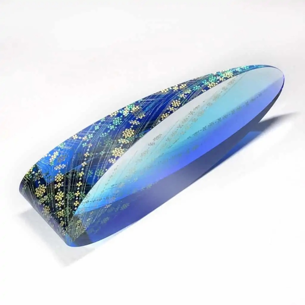 Cast glass with Kirikane, a traditional Japanese technique of gold leaf decoration