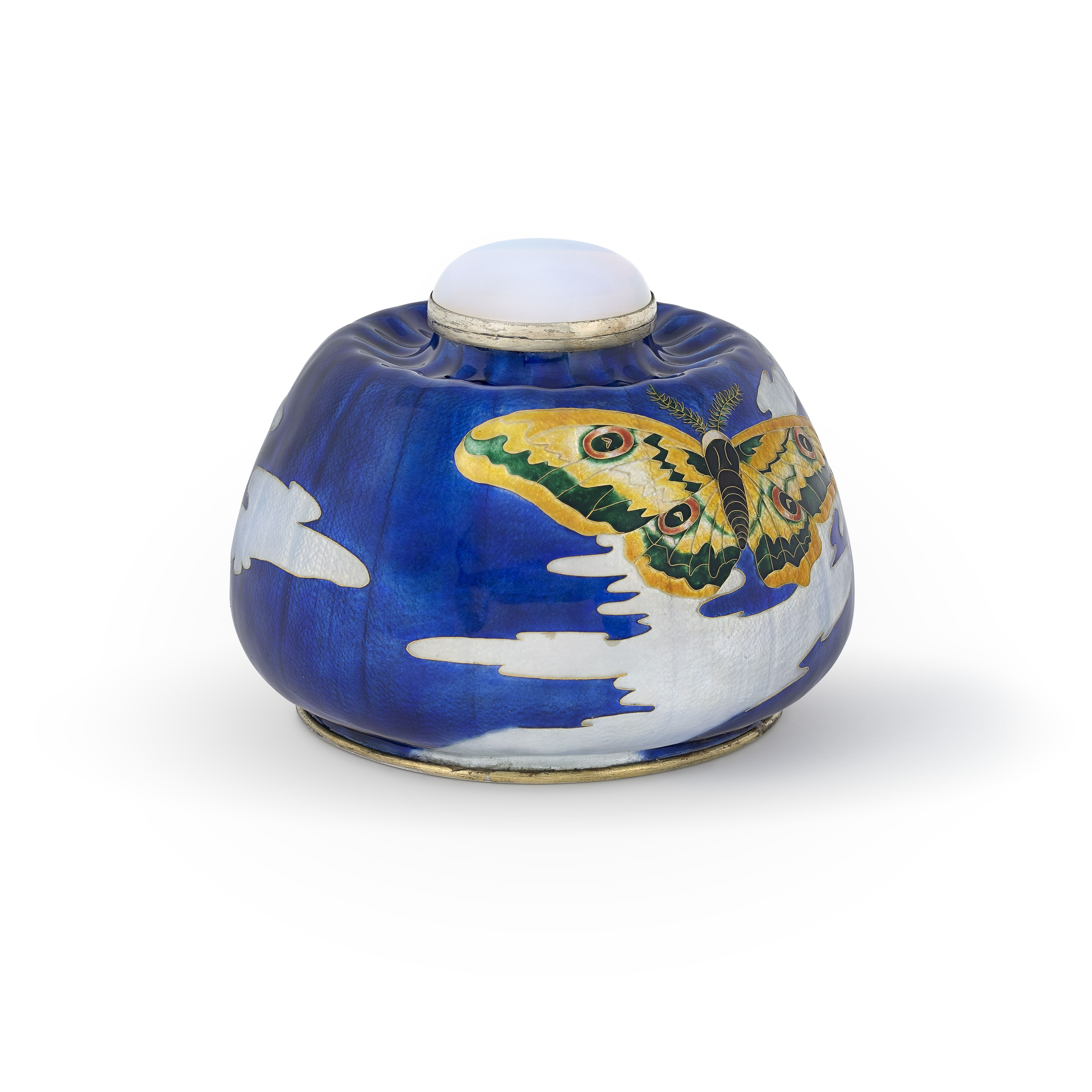 An enamelled silver bonbonnière in the Japanese taste by Eugène Feuillâtre, exhibited at the Salon des Artistes Français in 1902. Feuillâtre ran René Lalique’s enamellling workshop for 8 years before exhibiting under his own name. Learn more at the Wartski website.