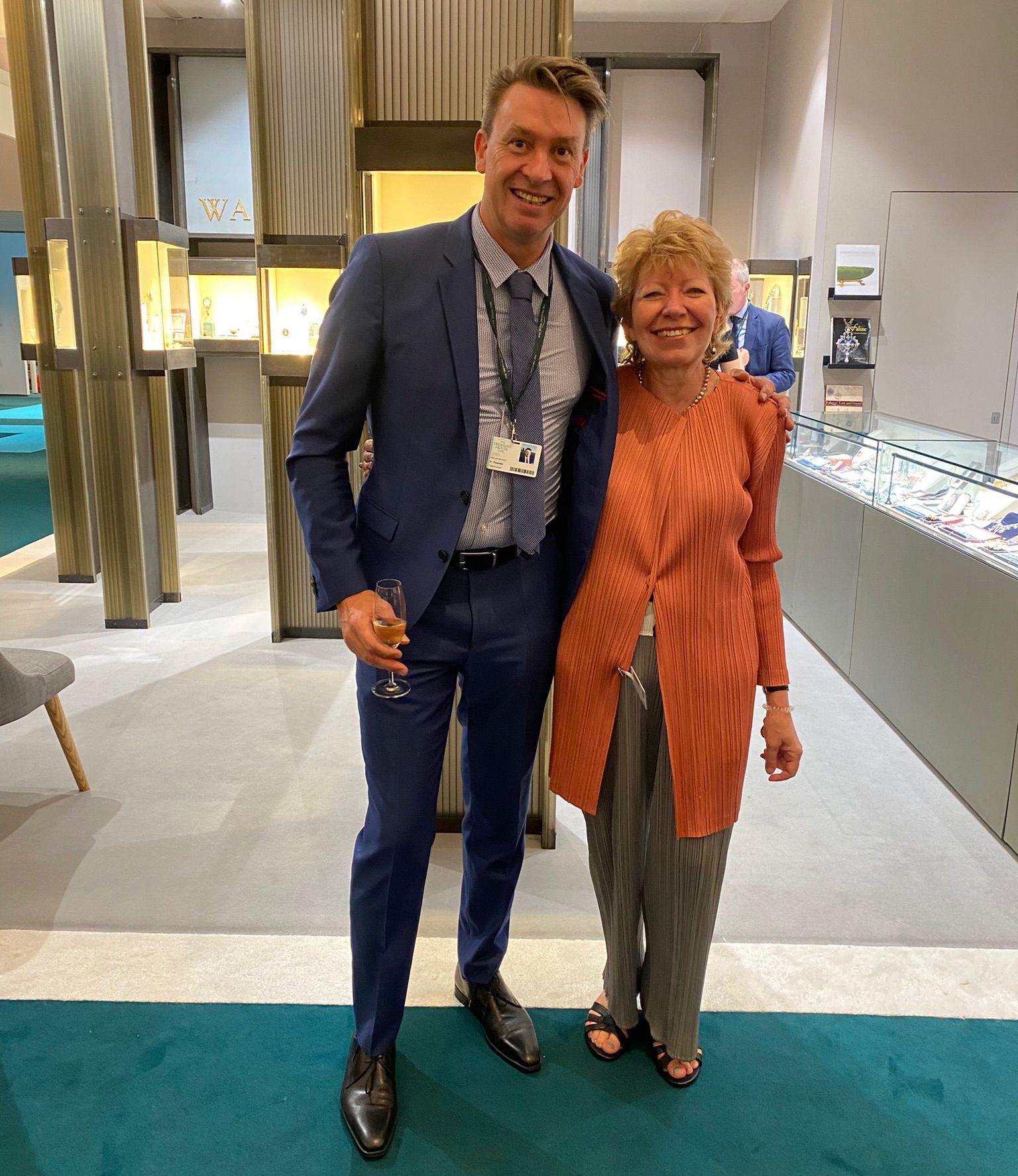 Katherine Purcell of Wartski with Harry van der Hoorn, founder of The Treasure House Fair and CEO of Stabilo International.