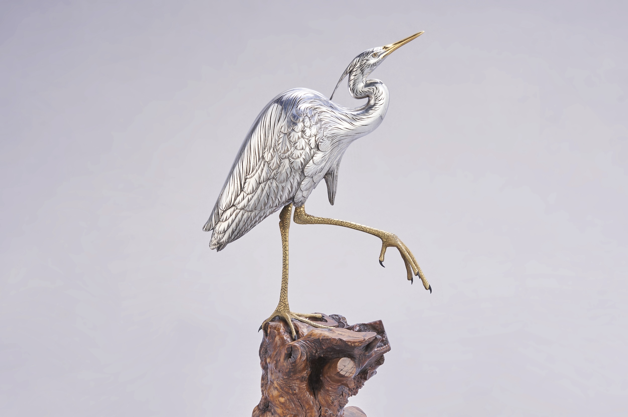 The focus of the exhibition is sculptures by metalwork masters like Takaze Kozan, Sekiguchi Shinya and Kano Seiun. To complement this offering, I’m also showing a select grouping of silver and cloisonné enamel objects by artists like Ishikawa Katsunobu, Kobayashi Bishun, Ando Jubei and Namikawa Yasuyuki.