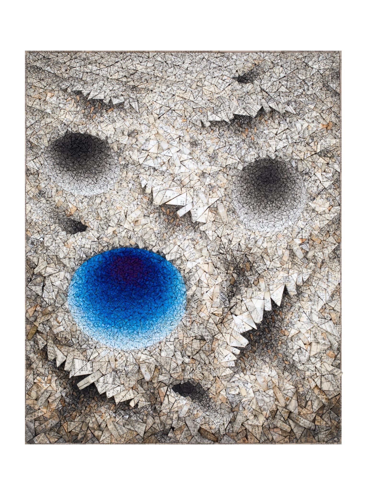 Below: Chun Kwang Young, Aggregation 23 - NV123 (BLUE), 2023, Mixed media with Korean mulberry paper 163 x 131 cm