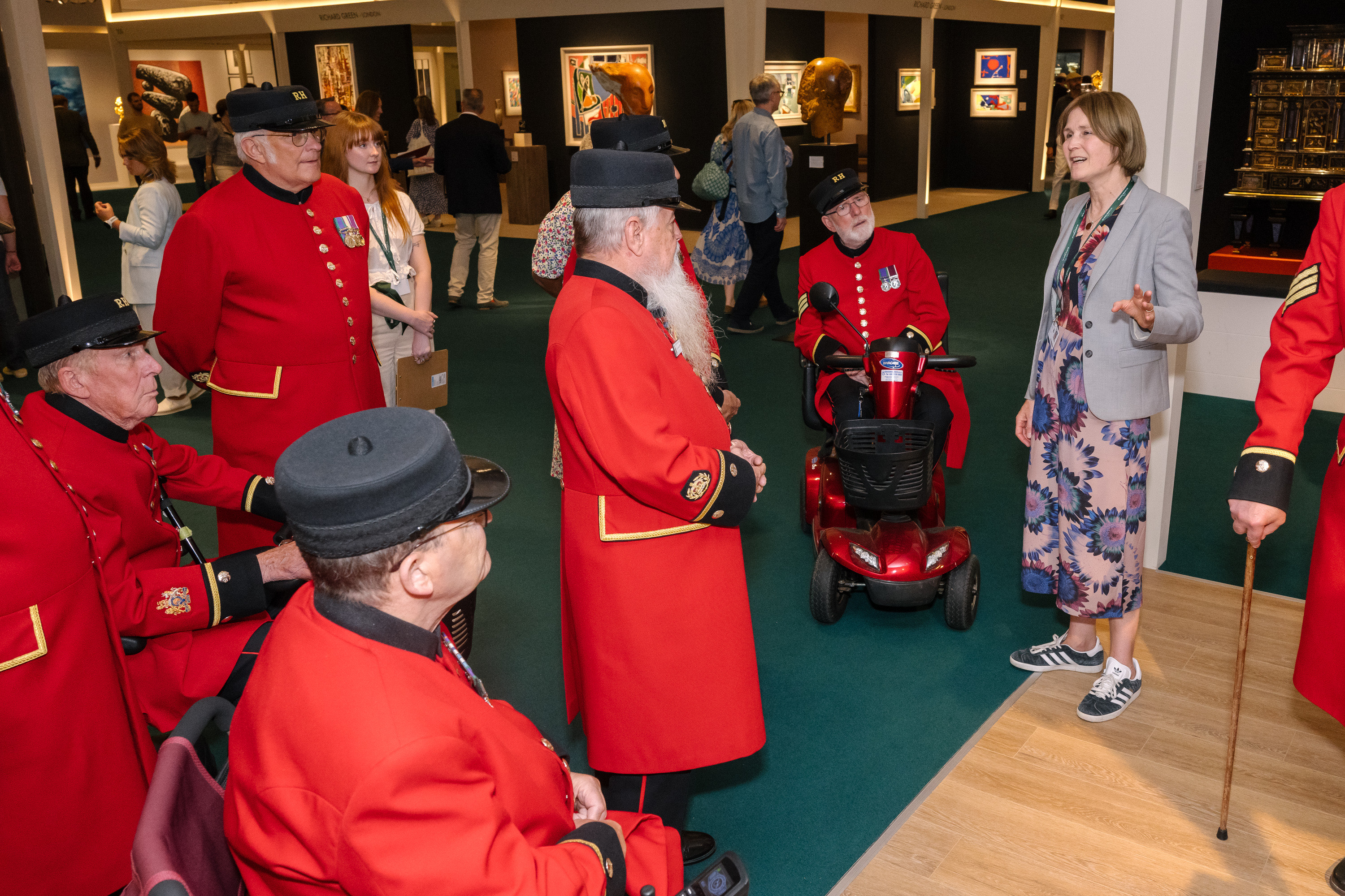 Above: Catherine showing a group of Royal Hospital Chelsea Pensioners around the Fair