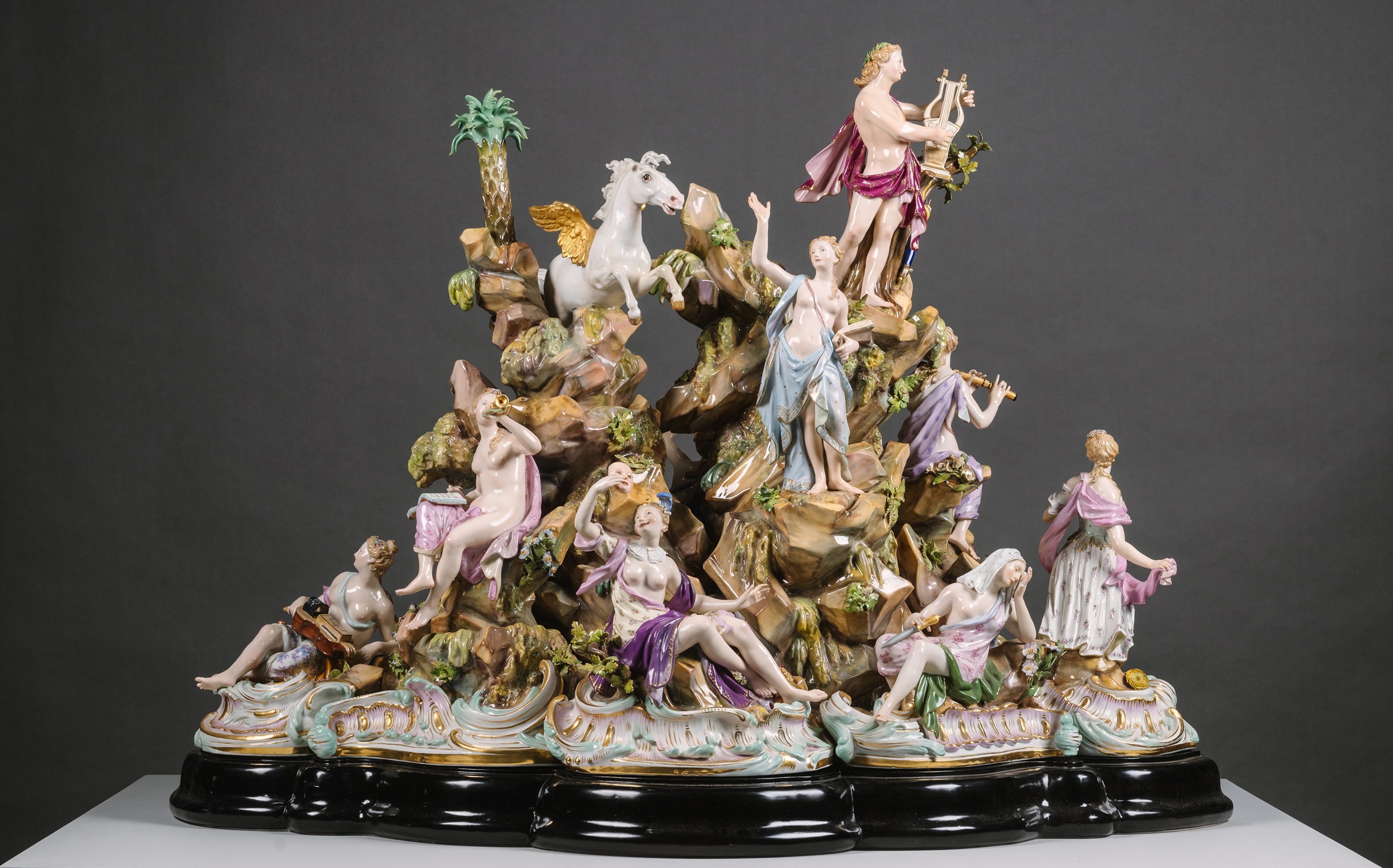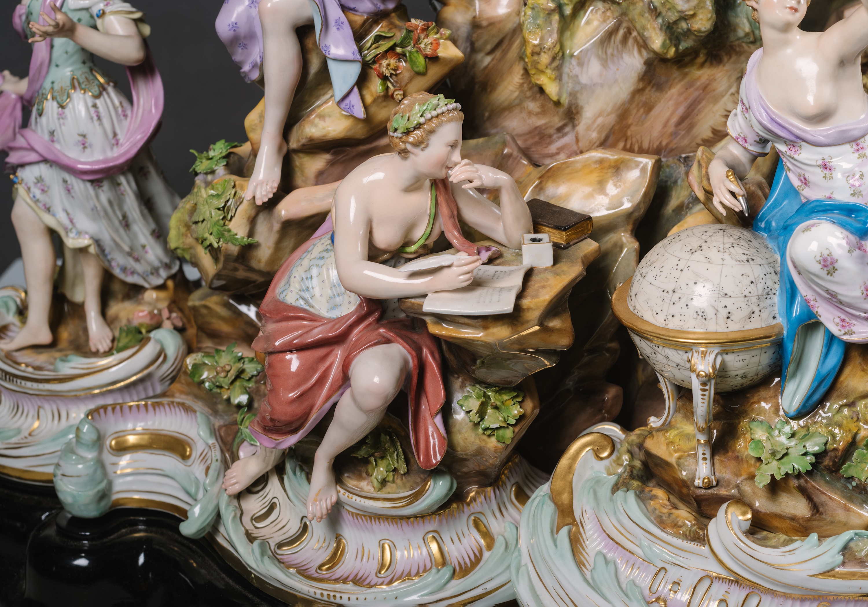 A Monumental Porcelain Figural Group of Apollo and the Muses on Mount Parnassus. Germany, Circa 1880