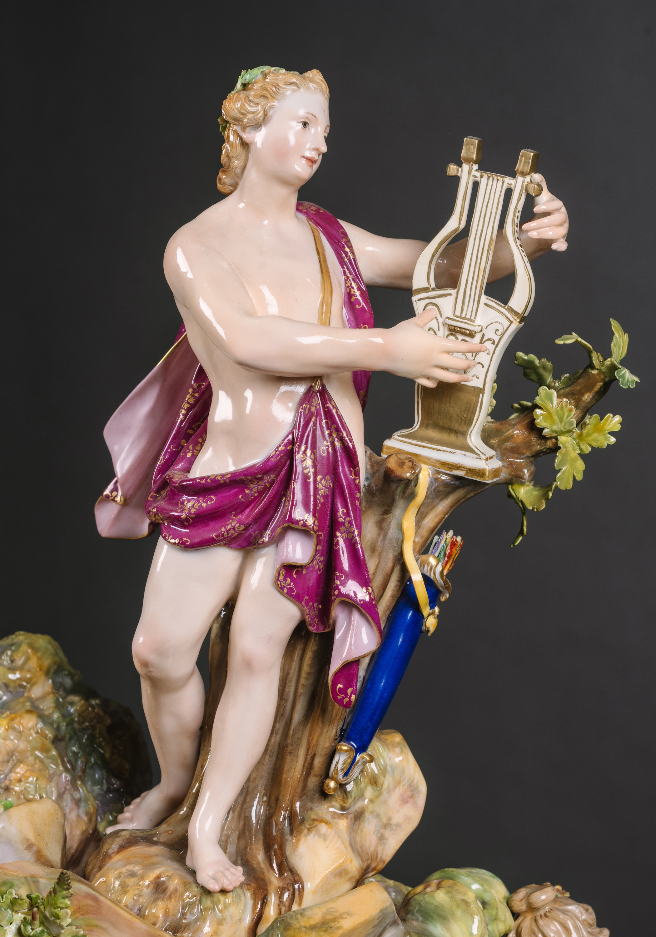 Detail of Apollo standing holding a lyre from A Monumental Porcelain Figural Group of Apollo and the Muses on Mount Parnassus. Germany, Circa 1880.Courtesy of Adrian Alan.