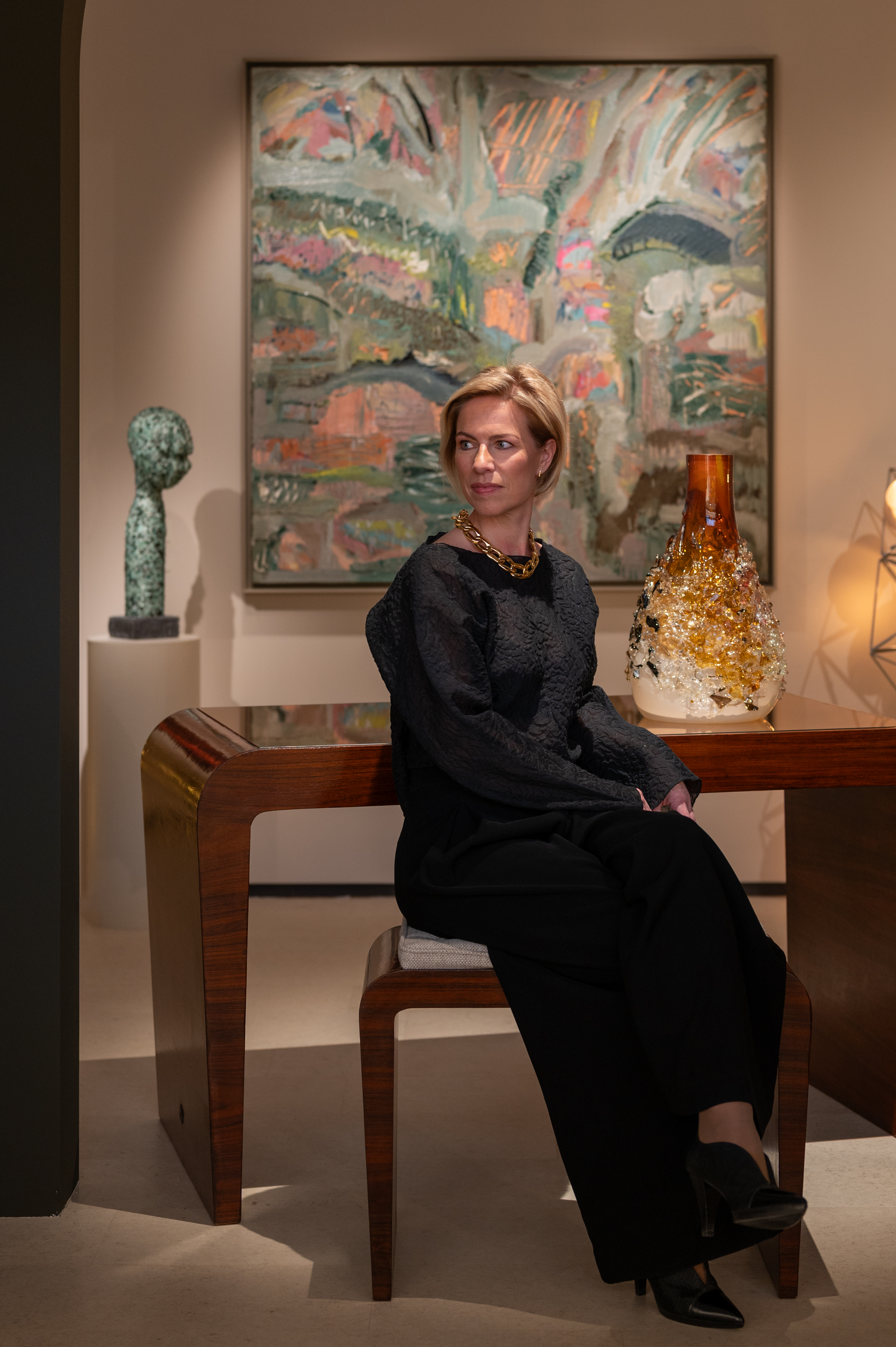 From the beginning, AtKris Studio carved out a niche in 20th-century design with a strong emphasis on Italian mid-century work, Dutch Art Deco – particularly the Amsterdamse School – and standout French and Danish designers. “We’ve always gravitated toward pieces that feel special”, says Krista. “Not necessarily because they’re loud, but because they’re made with intention. We look for integrity in form, material, and craftsmanship.” As the gallery’s profile grew, so too did its curatorial ambition. Krista deepened her knowledge through courses at Sotheby’s Institute and a growing library of design books. The couple’s frequent travels to Italy became sourcing trips, often leading them to off-the-beaten-path treasures: a large Murano glass lamp retrieved from the heart of Venice, a sculptural Rivadossi cabinet nestled in a hillside home.