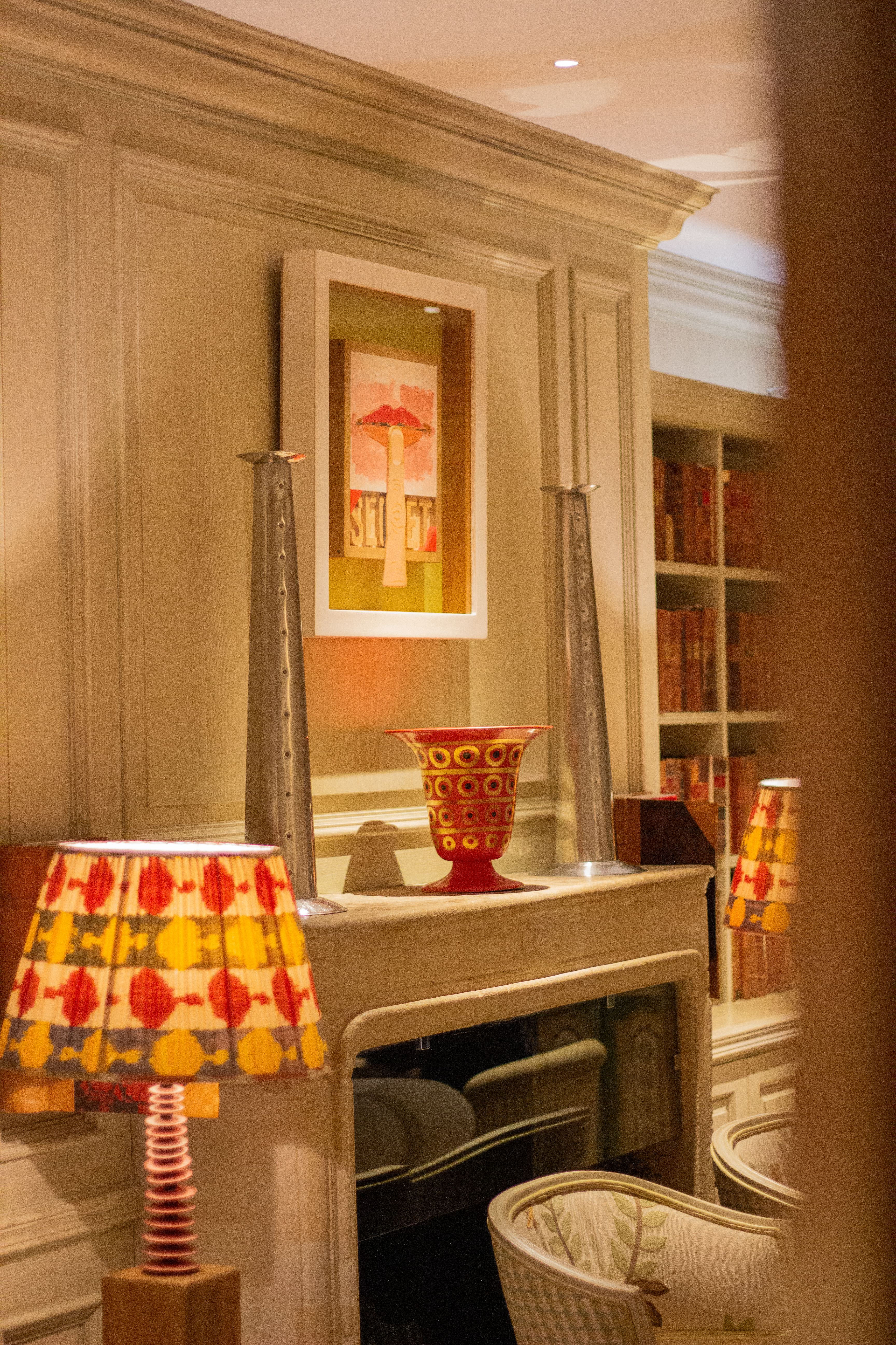 Hanging above the mantlepiece in the library is a bird’s eye painting of the Hampshire countryside by Dire Straits’ co-founder, John Illsley and in the lobby a magnificent abstract by Australian artist Graham Fransella. Each hotel is like an artist’s canvas—filled with curated objects, custom-made textiles, and site-specific commissions. This curatorial spirit is evident throughout the company’s portfolio—from Mimi la Biarritz’s sculptures made of playing cards to Peter Clark’s playful dog collages referencing The Beano and other cultural icons.