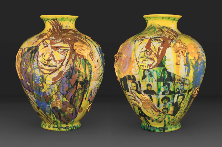 This year’s ennoblement of Sir Grayson Perry, while also honouring Perry’s achievements as a broadcaster, writer and public figure, is testament to ceramics’ ascendancy in the field of contemporary art. Twenty years ago, Perry was the first ceramic artist to win the Turner Prize. His vases might look classical or domestic from afar, but incorporate subversive images and text that deliver biting social commentary and complex autobiographical themes. His Warhol-Basquiat tribute I Want To Be An Artist sold for a record-breaking £632,750 in 2017; twelve more vases have achieved prices over £100,000 since then.