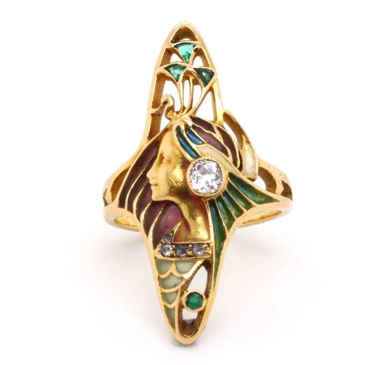 Then came the Art Nouveau era that challenged the value and significance of settings versus gemstones. Questioning perceptions entirely, master jewellers such as René Lalique presented them in a new light as an art form, their value almost solely in the skill of the jeweller than in the actual worth of the materials. Humble components such as enamel, moonstones and citrines paired with humble themes like wasps, flies or thistles were elevated to the highest levels of beauty through unparalleled craftsmanship, its value surpassing that of its parts.